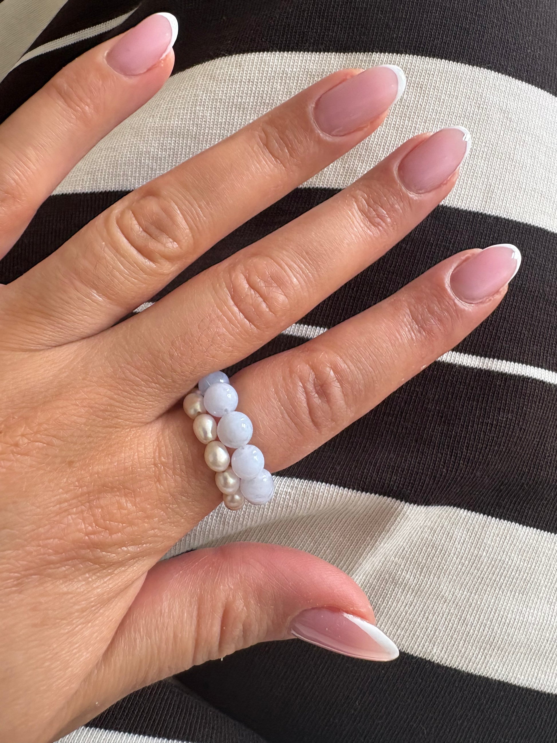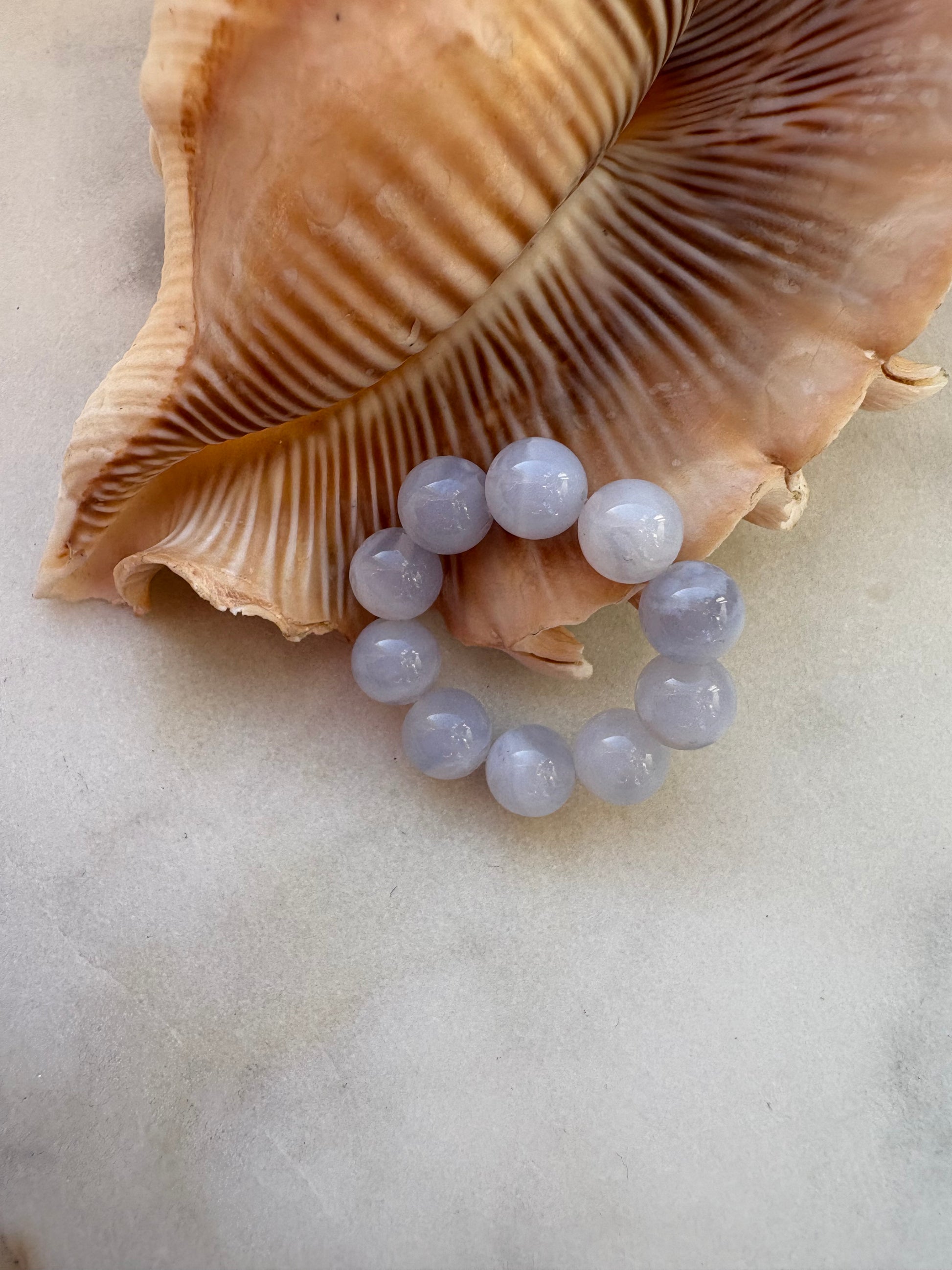 Der wunderschöne hellblaue Ring aus Chalcedon ist nicht nur ein zartes Schmuckstück, sondern auch ein Symbol für innere Ausgeglichenheit und Harmonie. Der Chalcedon, mit seiner transparenten, weichen Farbe, erinnert an den klaren Himmel an einem ruhigen Tag. Seine sanften Blautöne wirken beruhigend und schaffen eine Atmosphäre der Ruhe und Gelassenheit.🩵